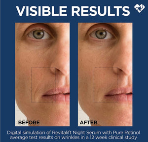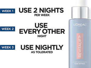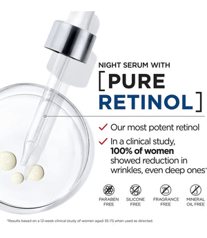- Réduit visiblement les rides, même profondes : le sérum de nuit Revitalift avec 0,3 % de rétinol pur a une concentration optimale et est validé par des dermatologues pour des résultats visibles : réduit les rides, même profondes tout en lissant la texture et en hydratant
